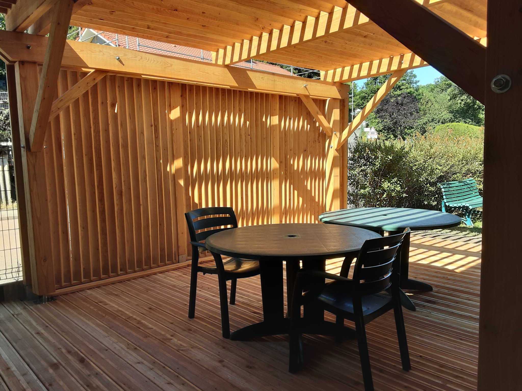 Le parc est aménagé d’un parcours de motricité où les résidents peuvent réaliser des séances de kinésithérapie, d’activités physiques adaptées ou s’y rendre avec leurs proches.