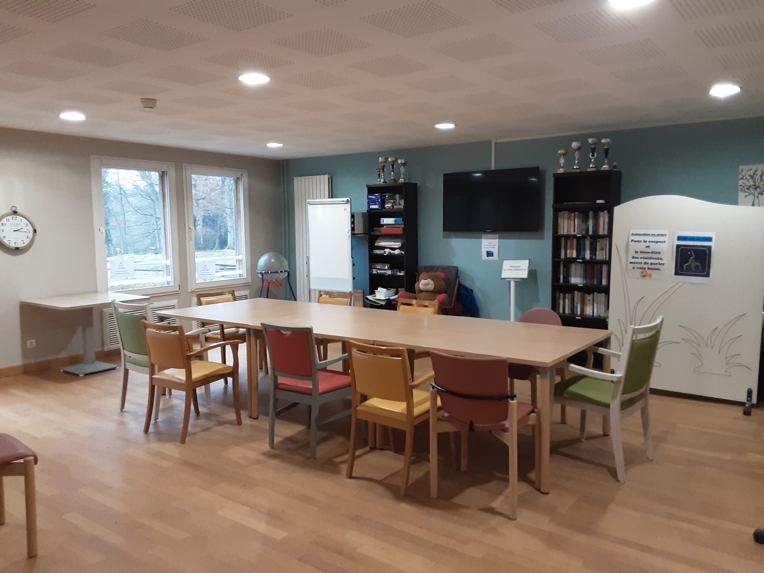 Dans le but de maintenir une vie sociale, l’animatrice en lien avec les bénévoles et les partenaires extérieurs propose des activités diverses et variées, personnalisées au projet d’accompagnement du résident.